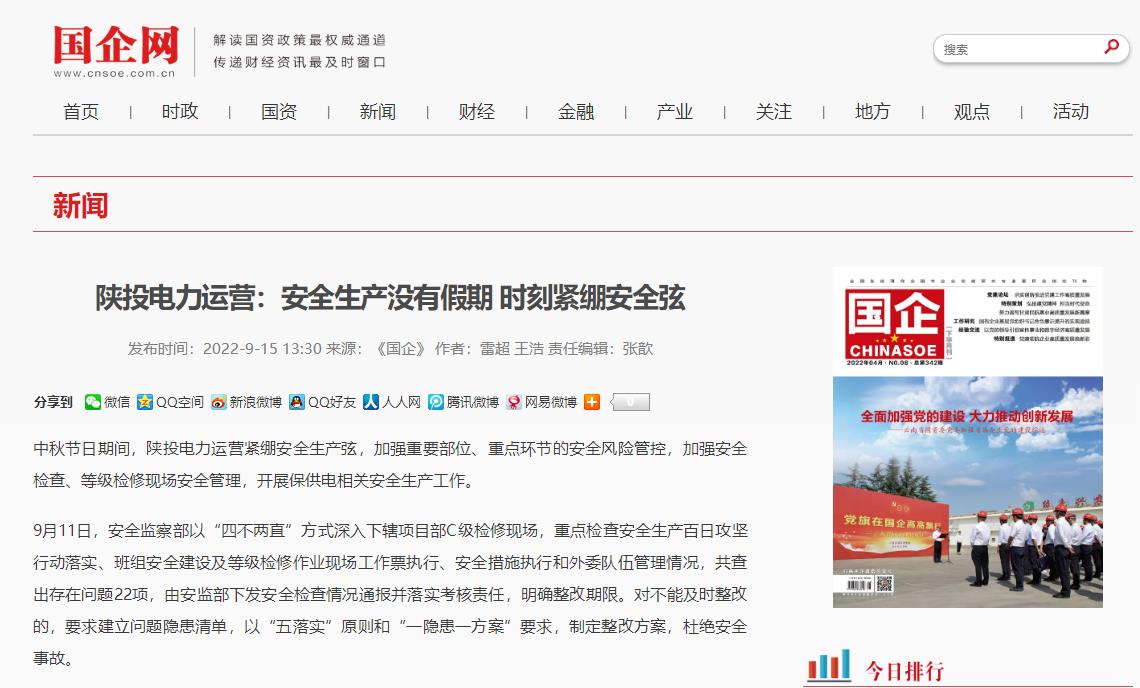 中秋節(jié)日期間,電力運(yùn)營(yíng)緊繃安全生產(chǎn)弦,加強(qiáng)重要部位、重點(diǎn)環(huán)節(jié)的安全風(fēng)險(xiǎn)管控,加強(qiáng)安全檢查、等級(jí)檢修現(xiàn)場(chǎng)安全管理,開展保供電相關(guān)安全生產(chǎn)工作。