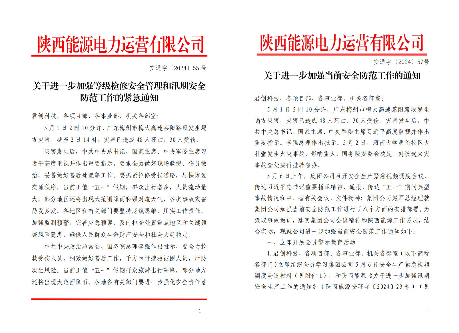 根據(jù)陜西能源關(guān)于進一步加強等級檢修安全管理和汛期安全防范工作的緊急通知要求,公司高度重視,周密安排部署,細化工作措施,于5月3日印發(fā)緊急通知,扎實開展汛期安全風險隱患排查工作。集團5月6日安全生產(chǎn)緊急視頻調(diào)度會議召開后,公司立即響應(yīng),印發(fā)了《關(guān)于進一步加強當前安全防范工作的通知》,深刻汲取廣東梅大高速塌方災(zāi)害及河南大學(xué)禮堂火災(zāi)事故教訓(xùn),深入學(xué)習習近平總書記重要指示精神,進一步加強安全生產(chǎn)風險防范工作,深化落實防控措施,深化完善防控體系,堅決遏制各類安全生產(chǎn)事故和社會影響事件發(fā)生。